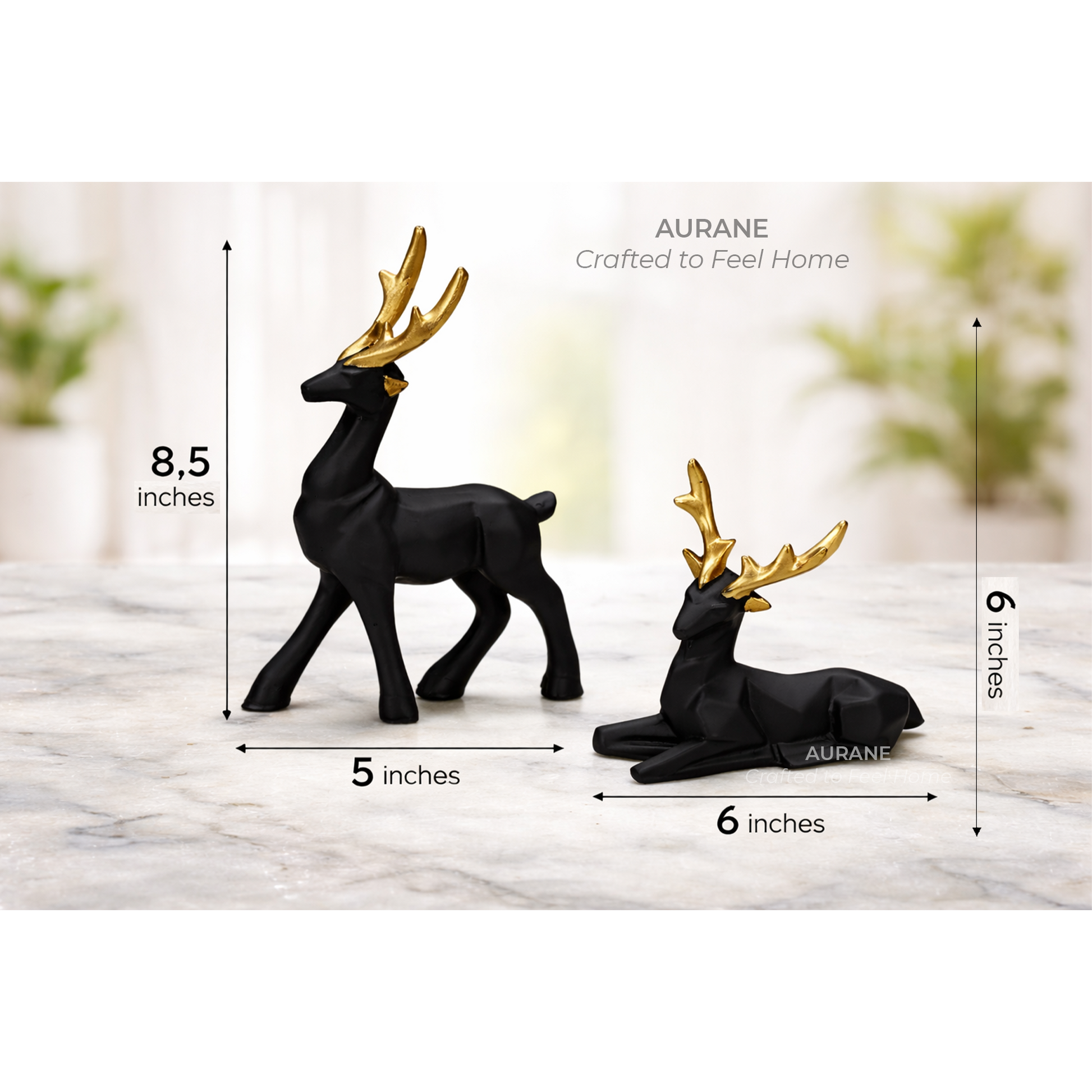 A contemporary deer figurine set designed as a statement accent for modern interiors. The matte black finish with gold detailing adds a bold yet elegant touch, making it ideal for console tables, coffee tables, or premium gifting.